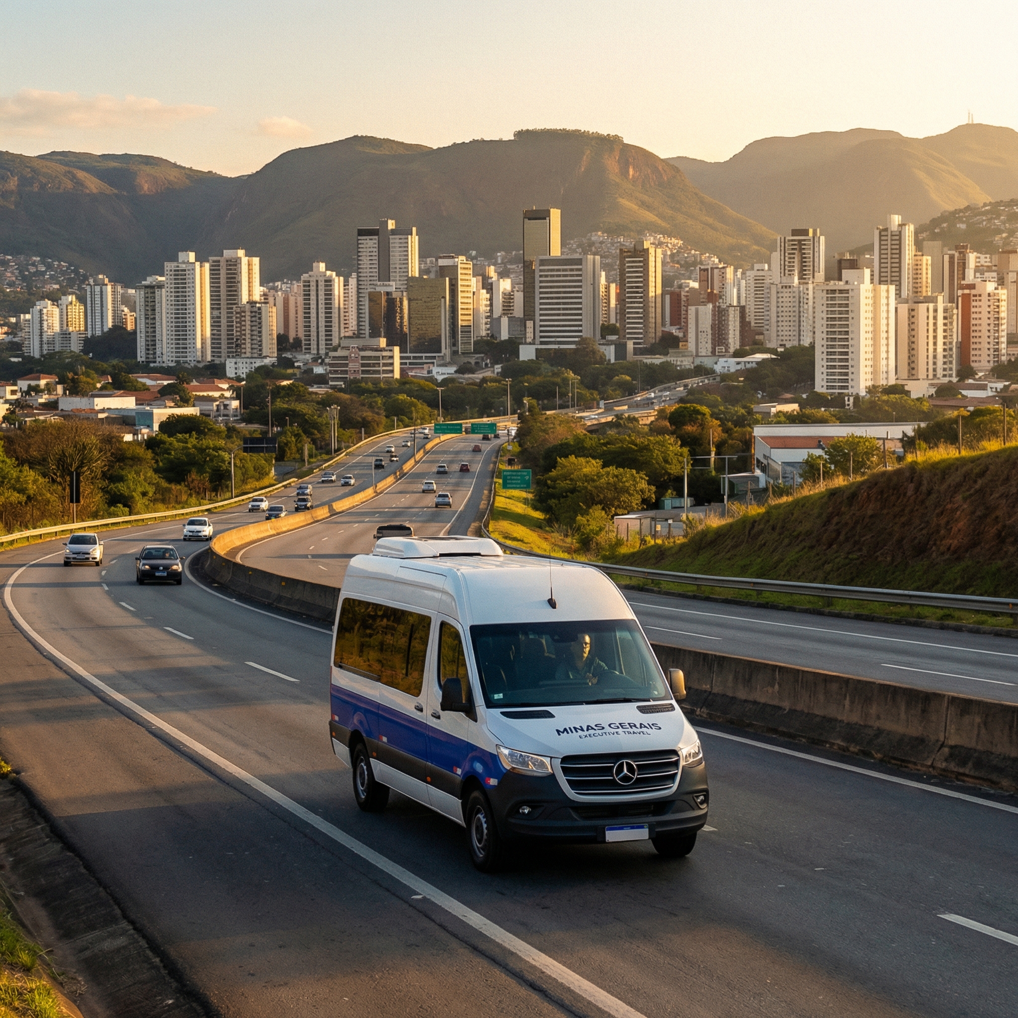 740 km pela BR-040. Veículos executivos, motoristas experientes na rota e flexibilidade que nenhum voo comercial oferece.