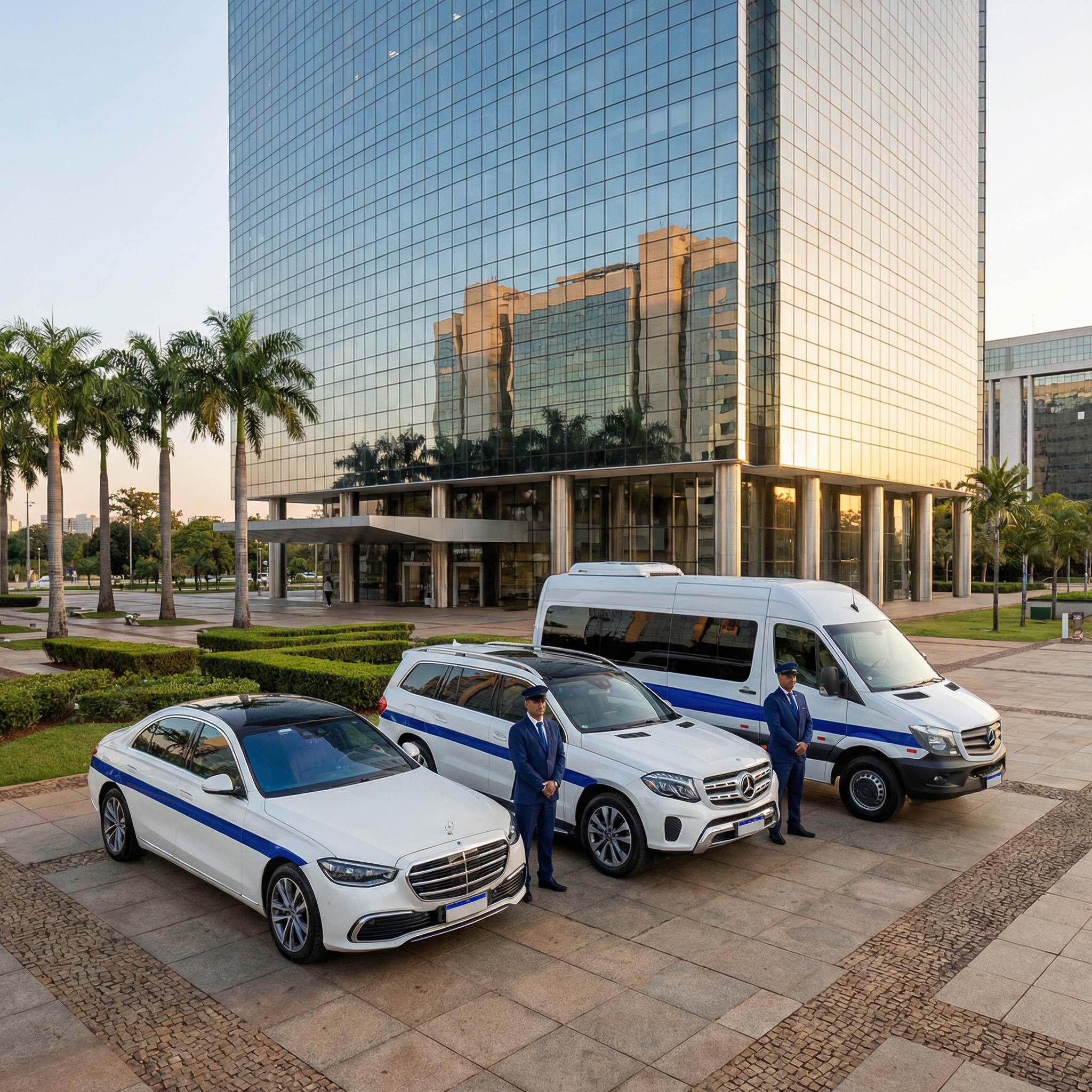 Sedans e SUVs premium com motorista profissional. Pontualidade e discrição para sua rotina executiva.
